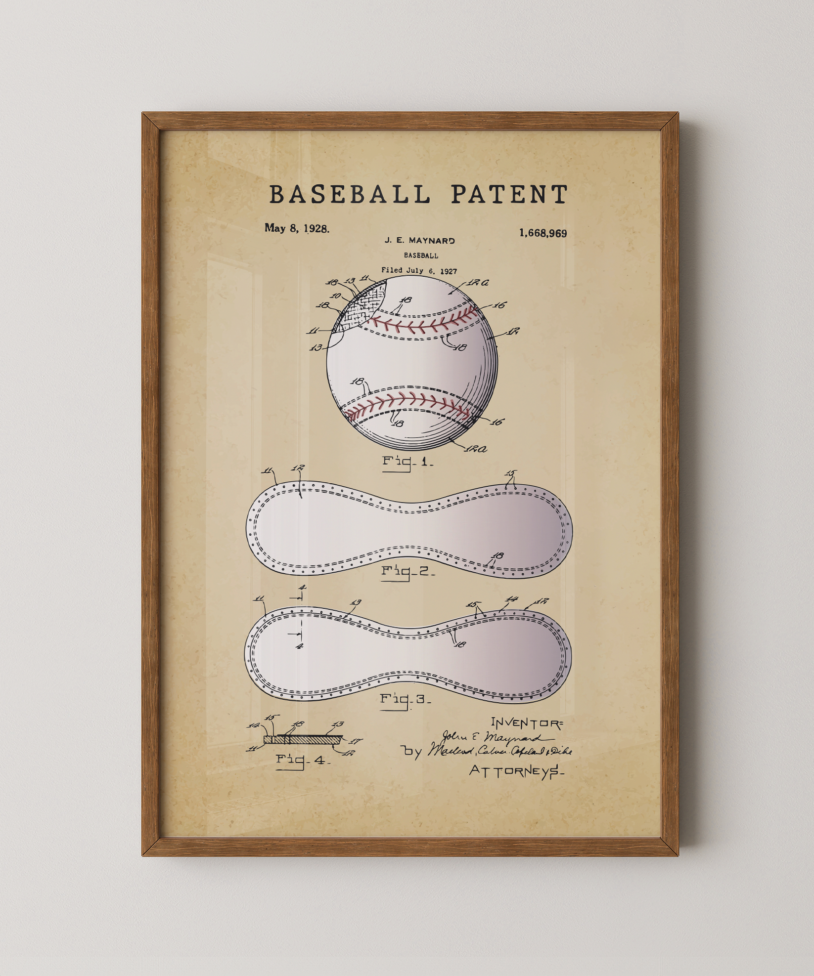 The toss, the hit, the crack of bat meeting ball: this print honors the patent behind the game’s essential piece. Each drawn line becomes part of the story of America’s pastime—motion captured, history echoed, and the sport’s spirit framed for display.