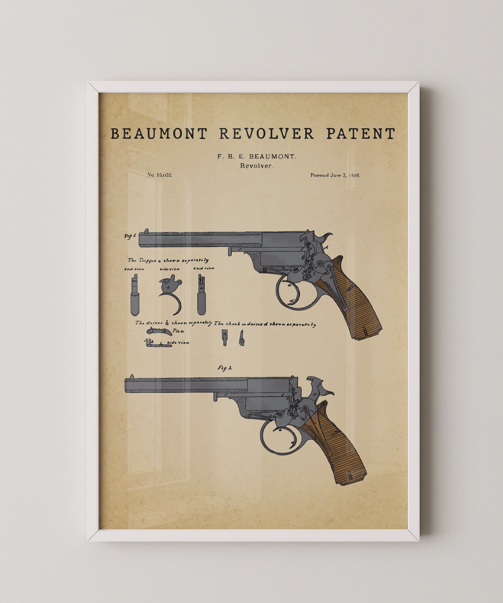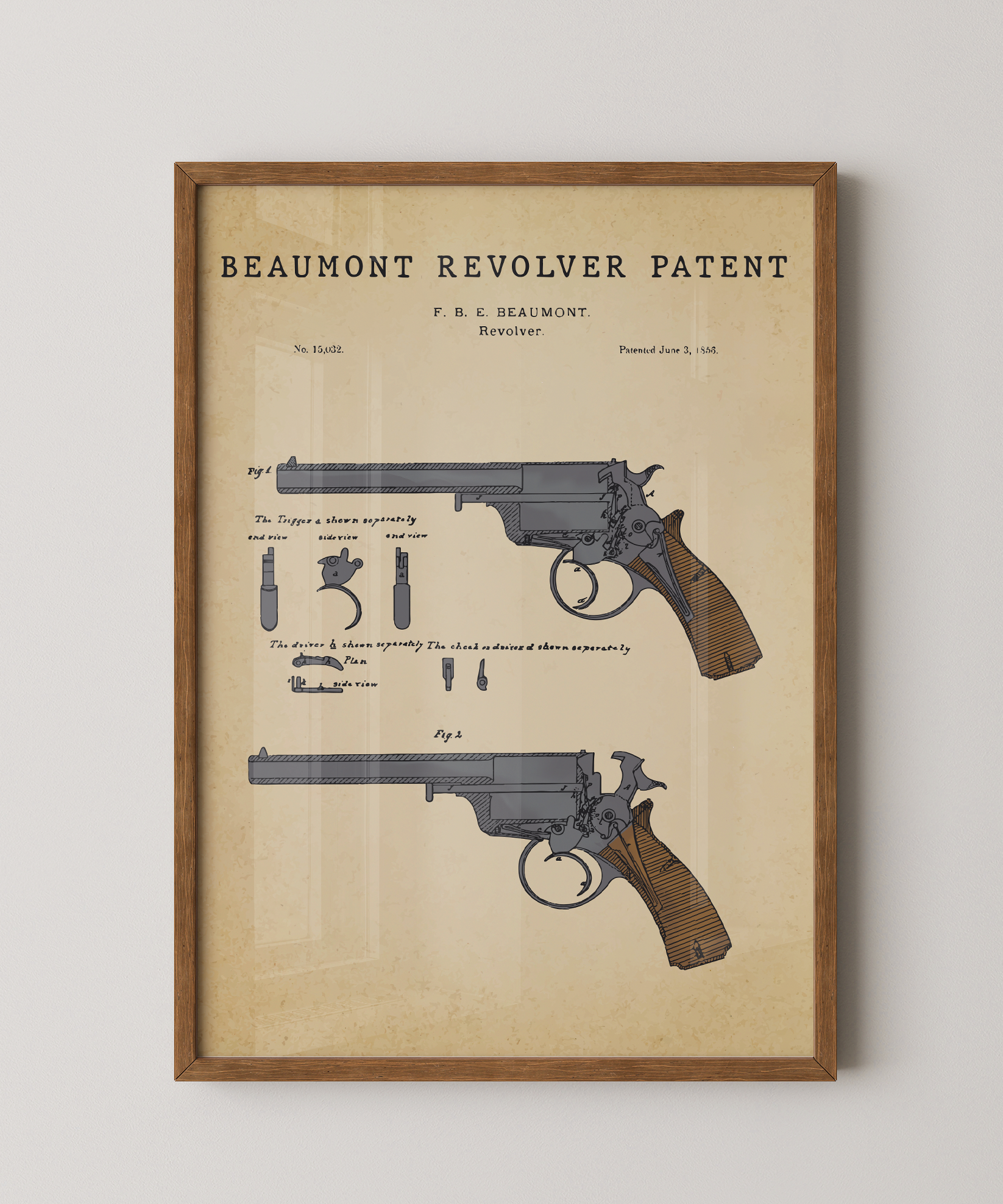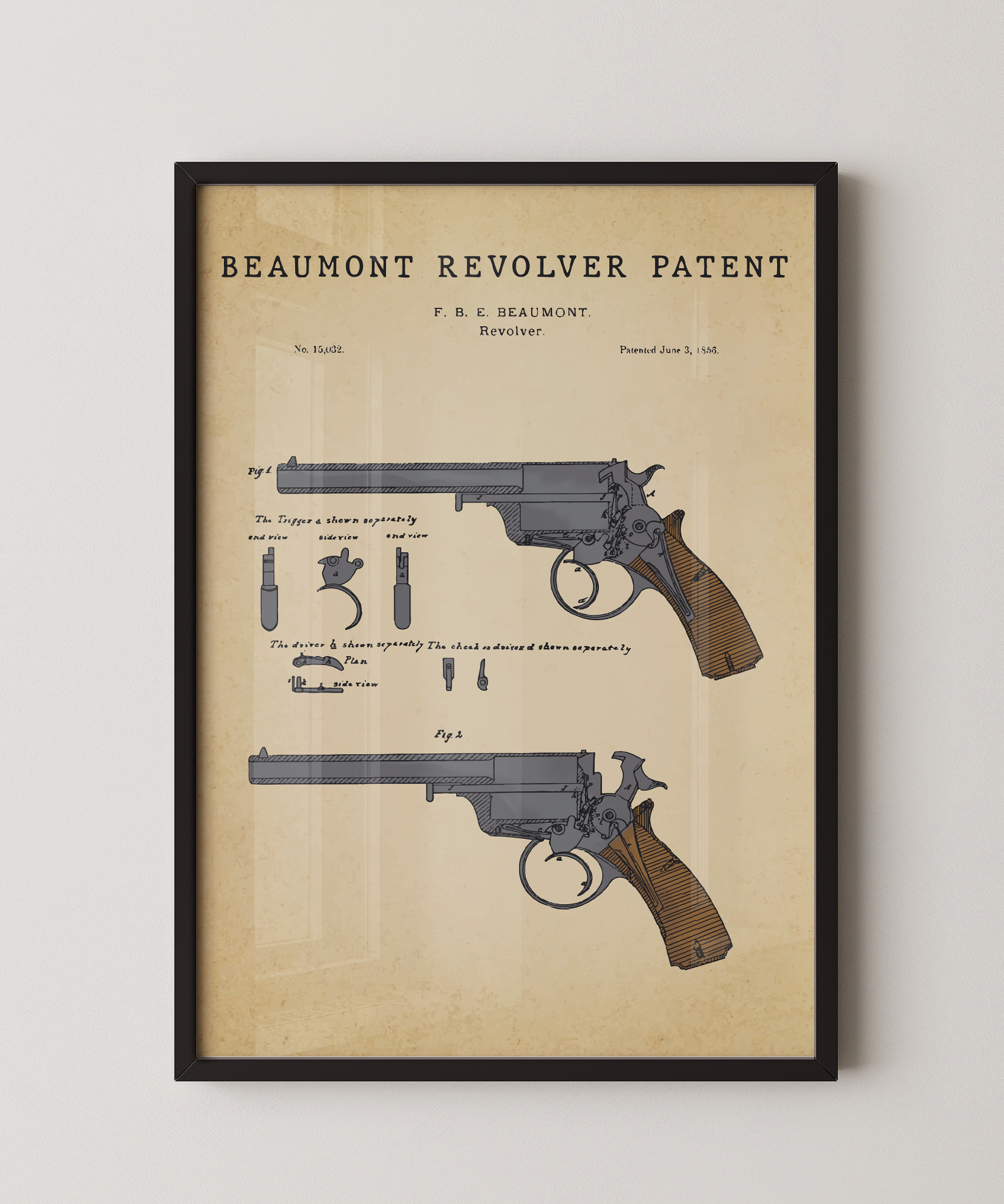 A legacy of ingenuity rendered in refined ink. This classic Beaumont revolver patent elevates the contours and mechanism of iconic design into elegant wall art that feels both timeless and deliberate. Hung in your space, its lines evoke the precision of craft and the quiet beauty of mechanical thought. A tribute to design, motion, and the enduring spirit of creative invention.