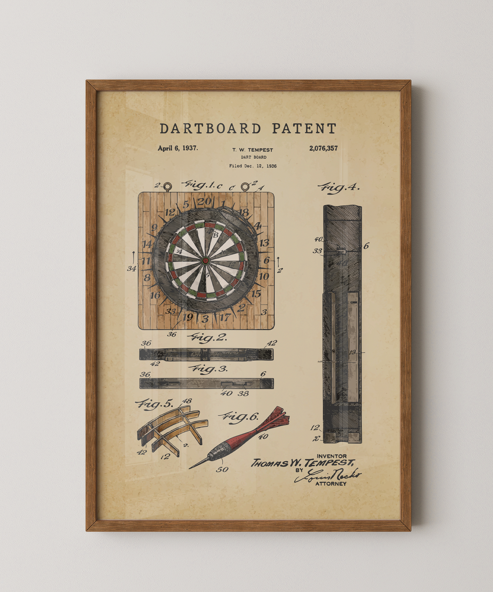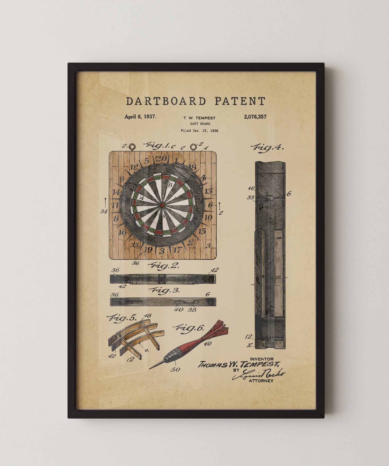 A circle of aim drawn in graceful ink. This classic dartboard patent elevates its concentric design into refined wall art that feels both timeless and deliberate. Hung in your space, its lines evoke focused quiet moments, shared laughter, and the satisfying rhythm of play. A tribute to design, motion, and the enduring spirit of creative engagement.