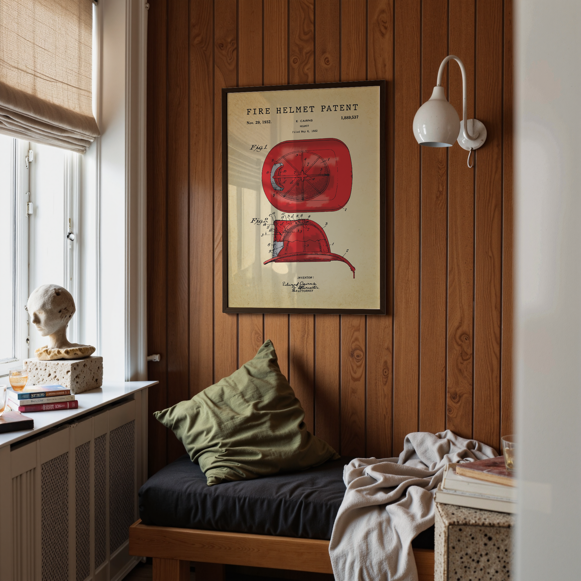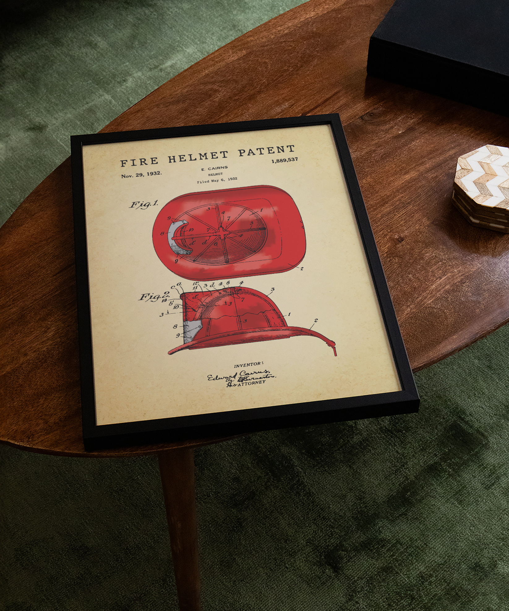 The Fire Helmet patent has a lovely aged look without feeling artificial. It’s stunning framed.
