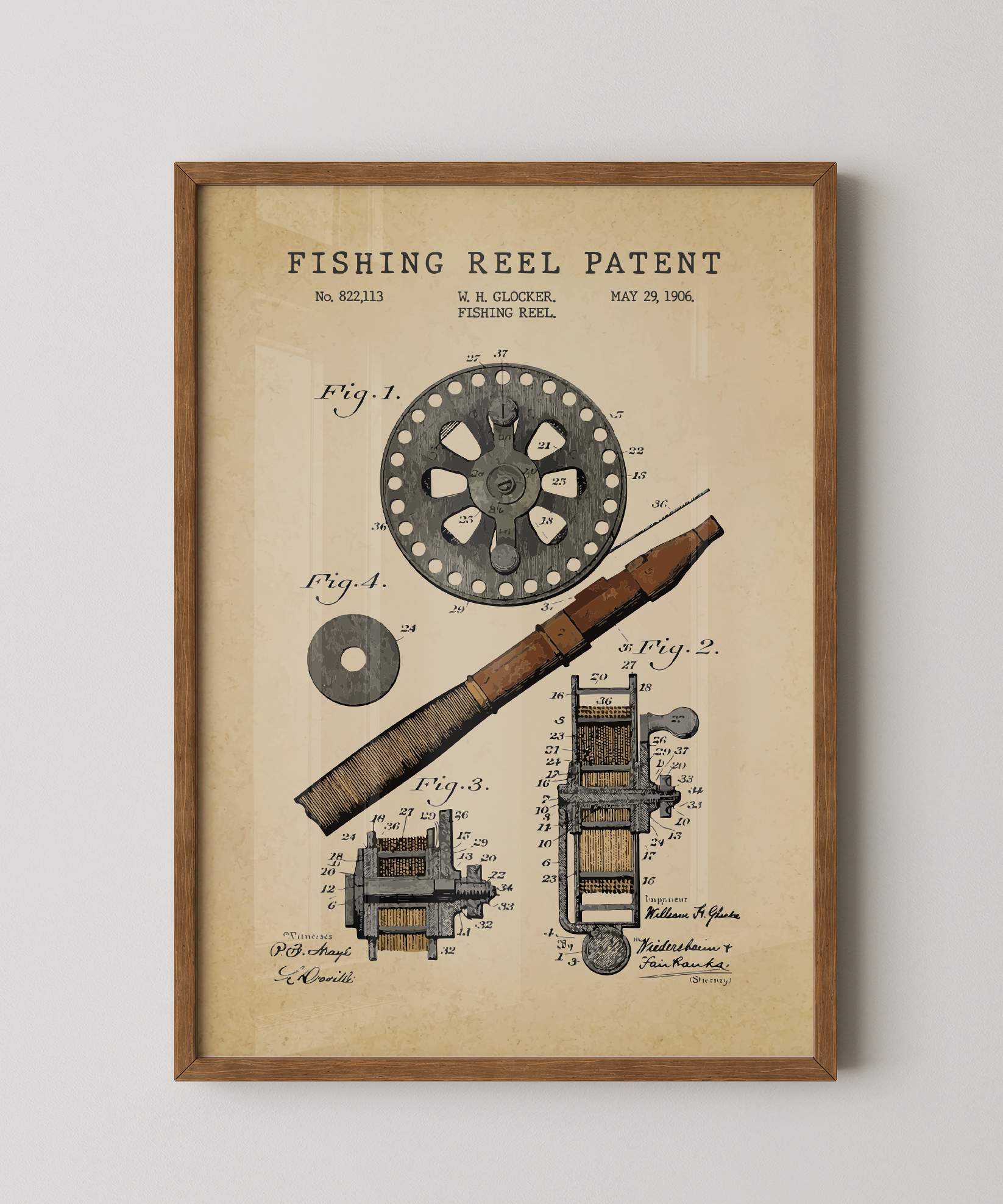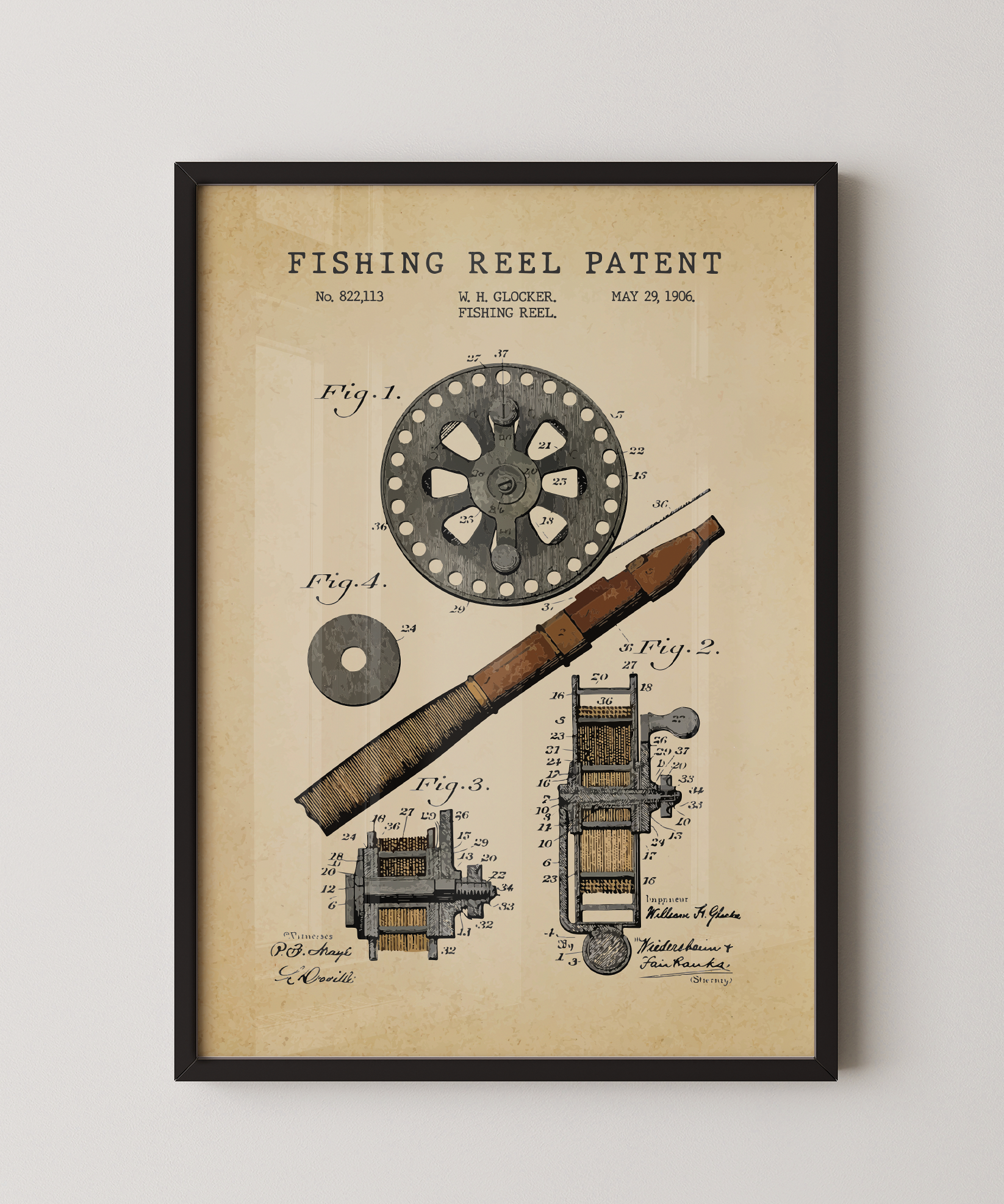 A mechanism of quiet precision drawn in graceful ink. This classic fishing reel patent elevates its thoughtful form and balanced curves into refined wall art that feels both timeless and expressive. Hung in your space, its lines evoke gentle waters, the cadence of the cast, and the patience of every pursuit. A tribute to design, motion, and the enduring spirit of creative craft.
