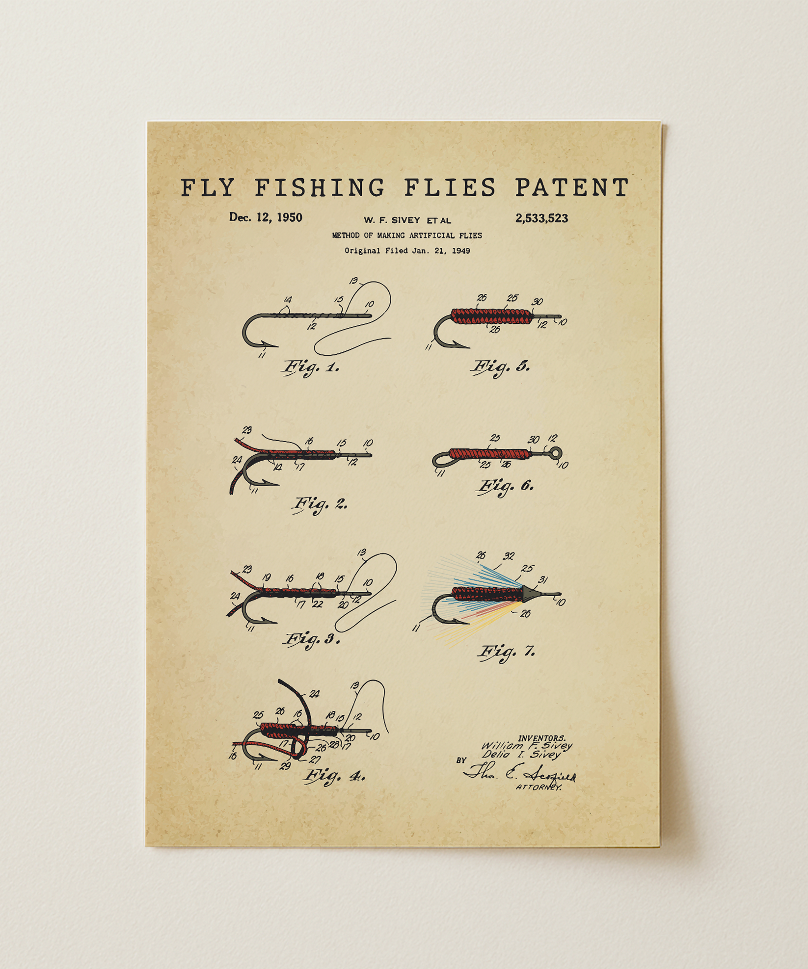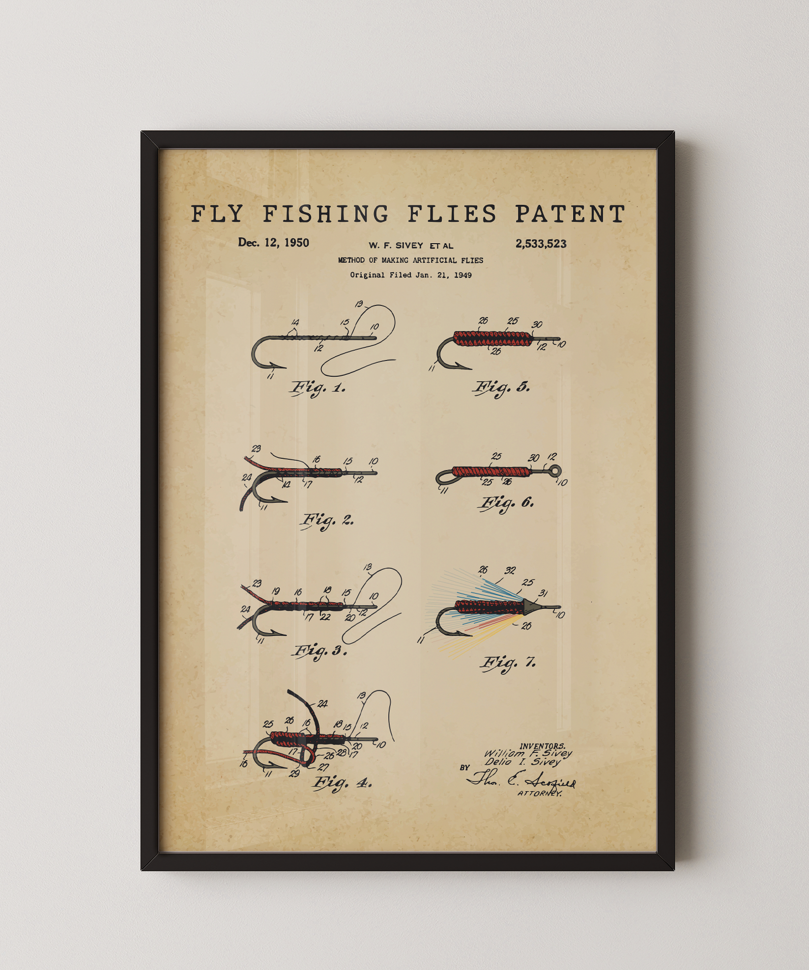 A collection of delicate form drawn in elegant ink. This fly fishing flies patent turns intricate hooks and feathered design into refined wall art that feels both timeless and thoughtful. Hung in your space, its lines evoke quiet riverside mornings and the patient rhythm of the cast. A tribute to design, motion, and the enduring spirit of creative craft.