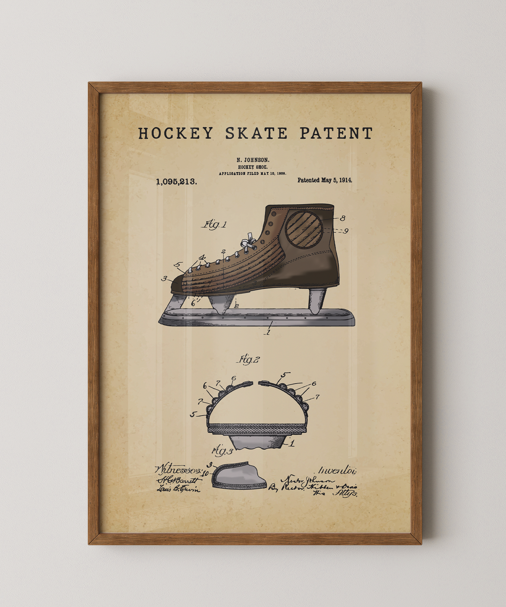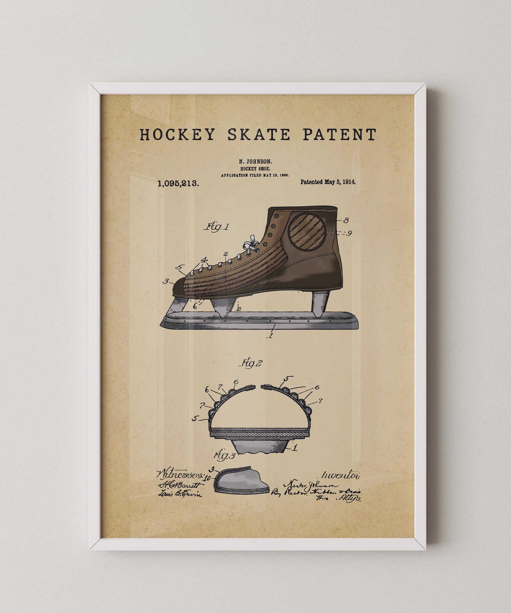 Ice, speed, and sharp edges — this painted hockey skate patent print celebrates the thrill of the rink. It captures movement in stillness, honoring a sport built on grit and glide.