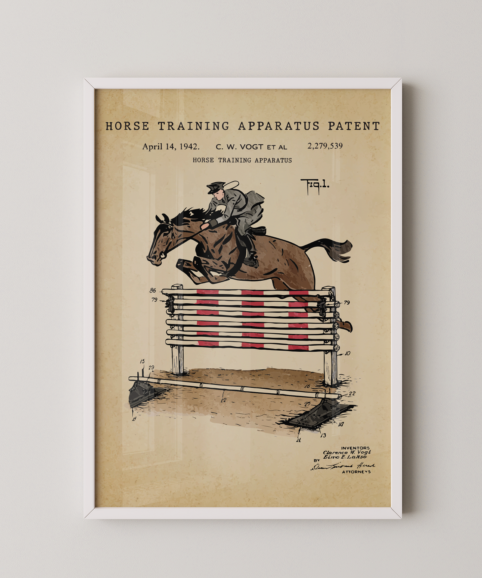 A silhouette of harmony drawn in graceful ink. This horse training apparatus patent elevates its thoughtful form into refined wall art that feels both timeless and intentional. Hung in your space, its lines evoke the rhythm of motion and the quiet bond between rider and steed. A tribute to design, motion, and the enduring spirit of creative craft.