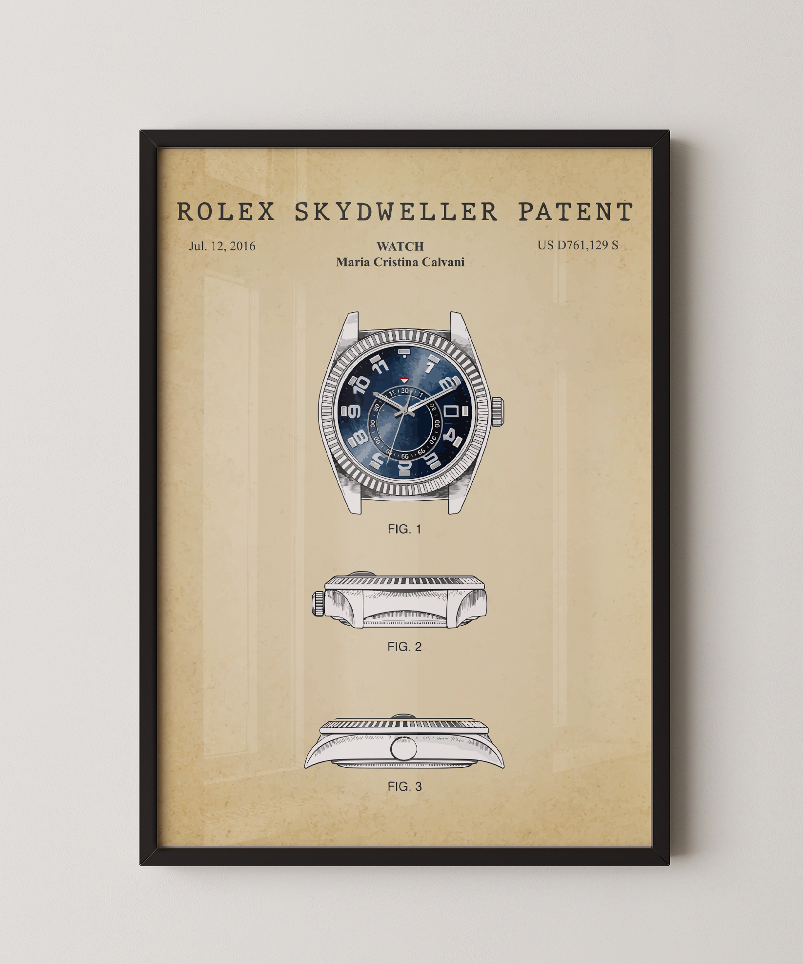 A marvel of precision drawn in graceful ink. This Rolex Sky-Dweller patent elevates its ingenious mechanism and elegant form into refined wall art that feels both timeless and expressive. Hung in your space, its lines evoke measured moments, global journeys, and the harmony of design and motion. A tribute to craftsmanship, innovation, and the enduring spirit of creative legacy.