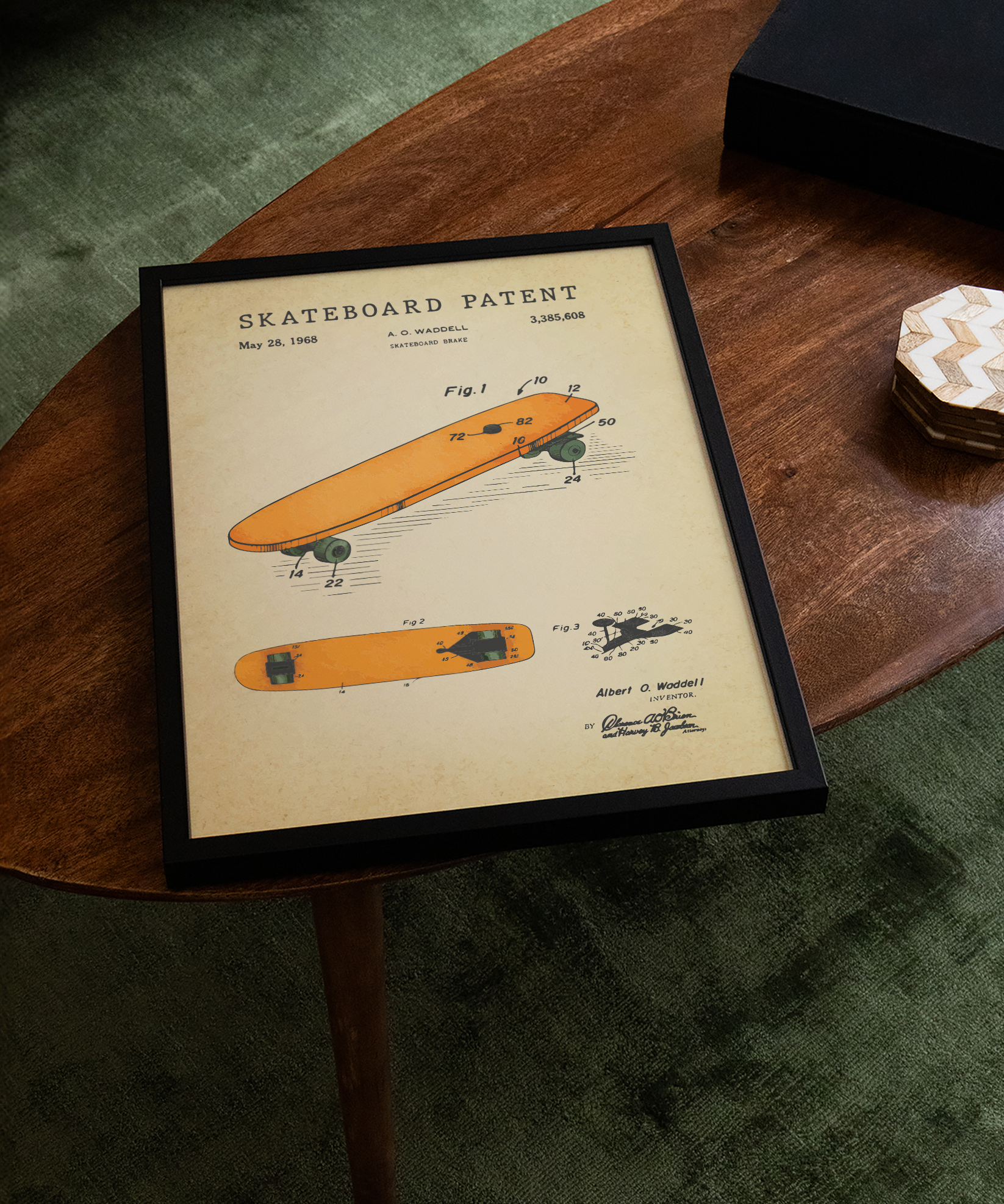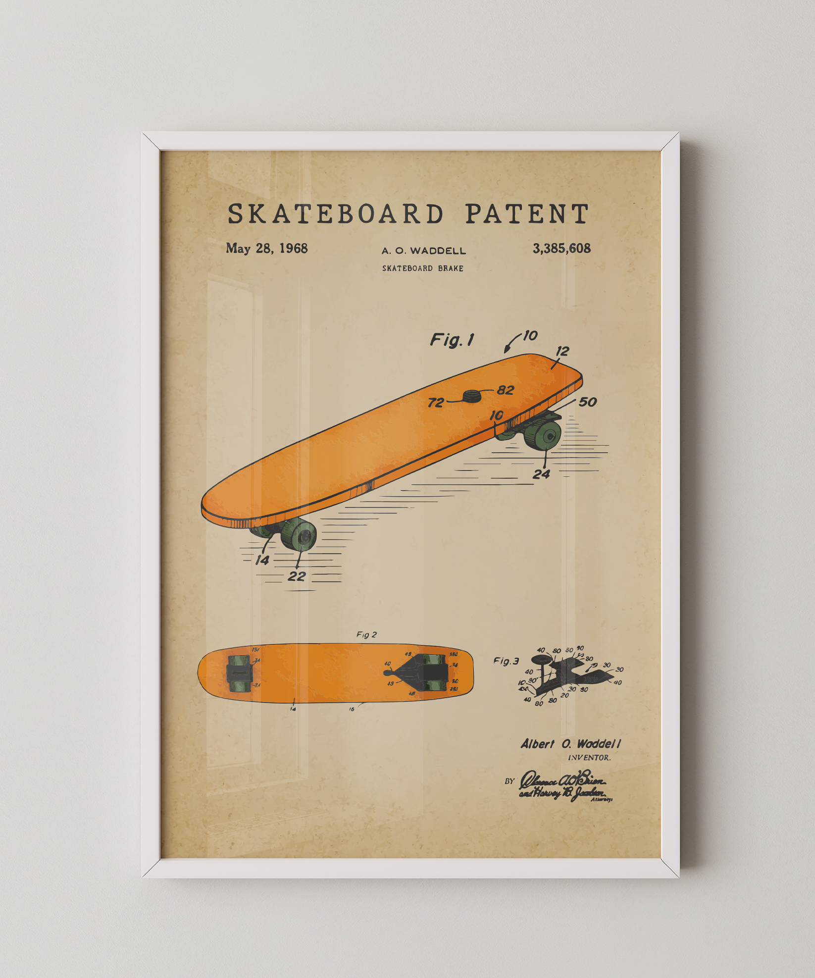A shape of motion drawn in graceful ink. This classic skateboard patent elevates its sleek board and thoughtful design into refined wall art that feels both timeless and expressive. Hung in your space, its lines evoke the rush of pavement, the freedom of balance, and the poetry of movement. A tribute to design, motion, and the enduring spirit of creative adventure.