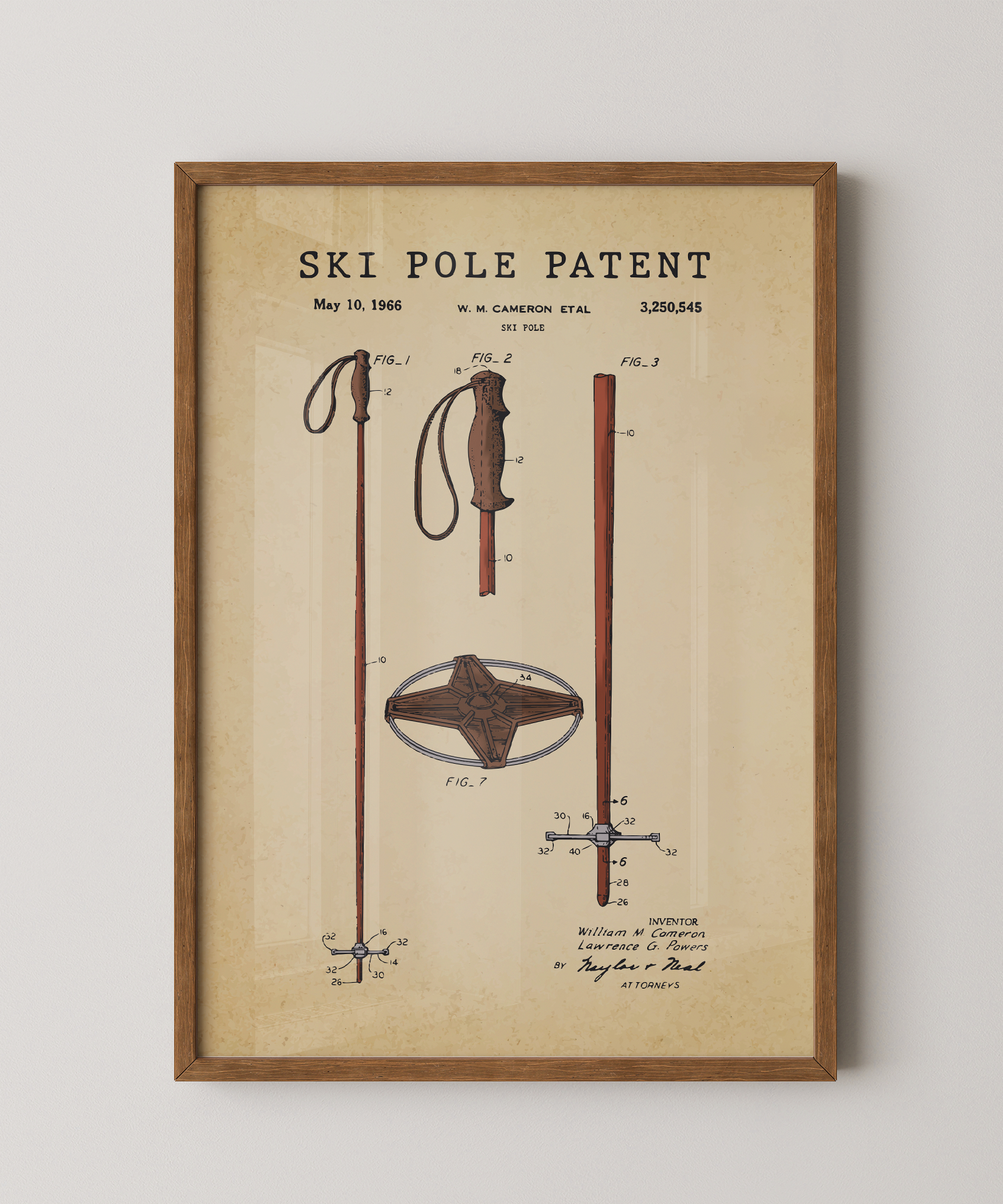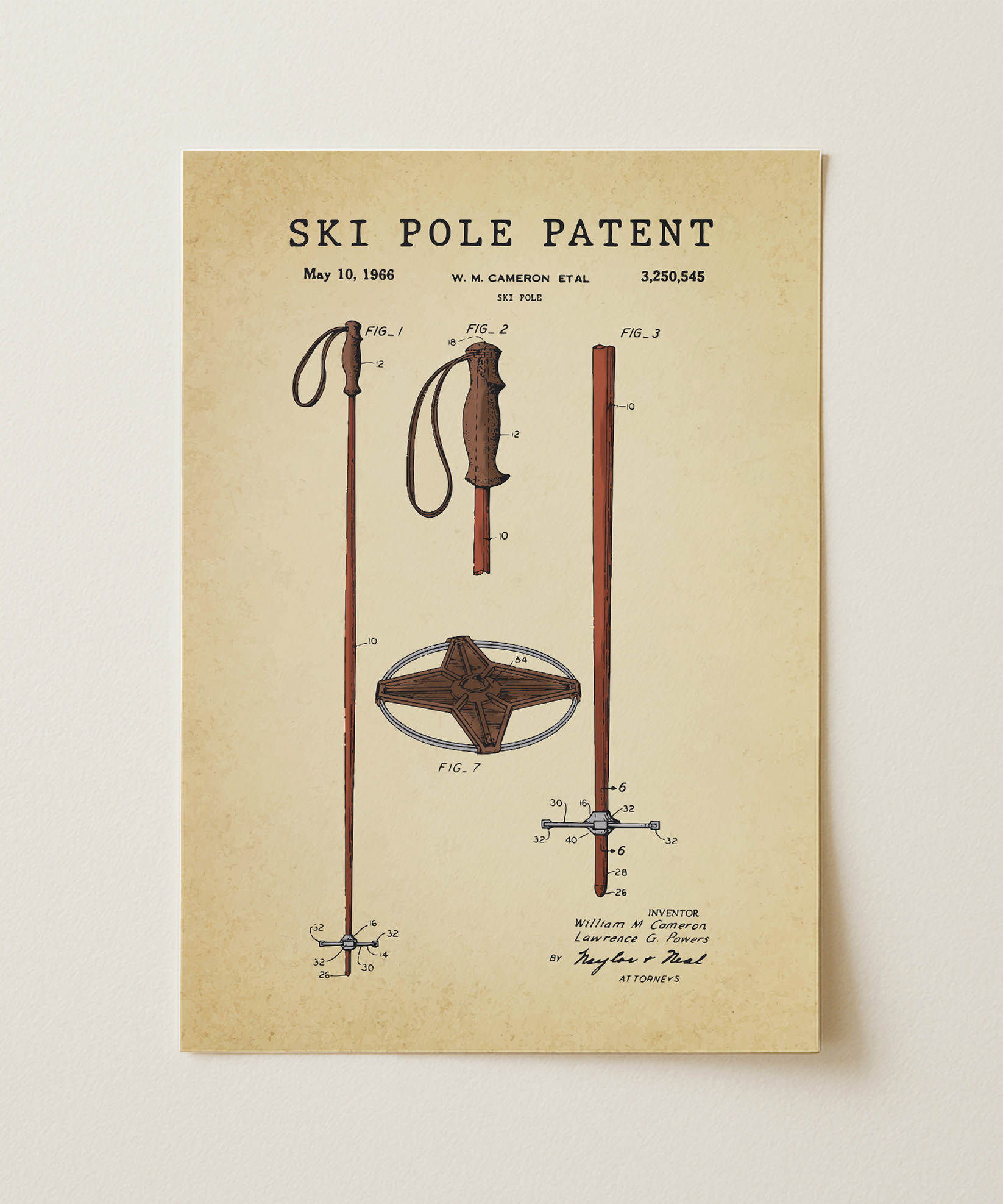 A slender line of purpose drawn in refined ink. This classic ski pole patent elevates its simple form into elegant wall art that feels both timeless and deliberate. Hung in your space, its silhouette evokes crisp air, quiet slopes, and the rhythm of ascent and descent. A tribute to design, motion, and the enduring spirit of creative invention.