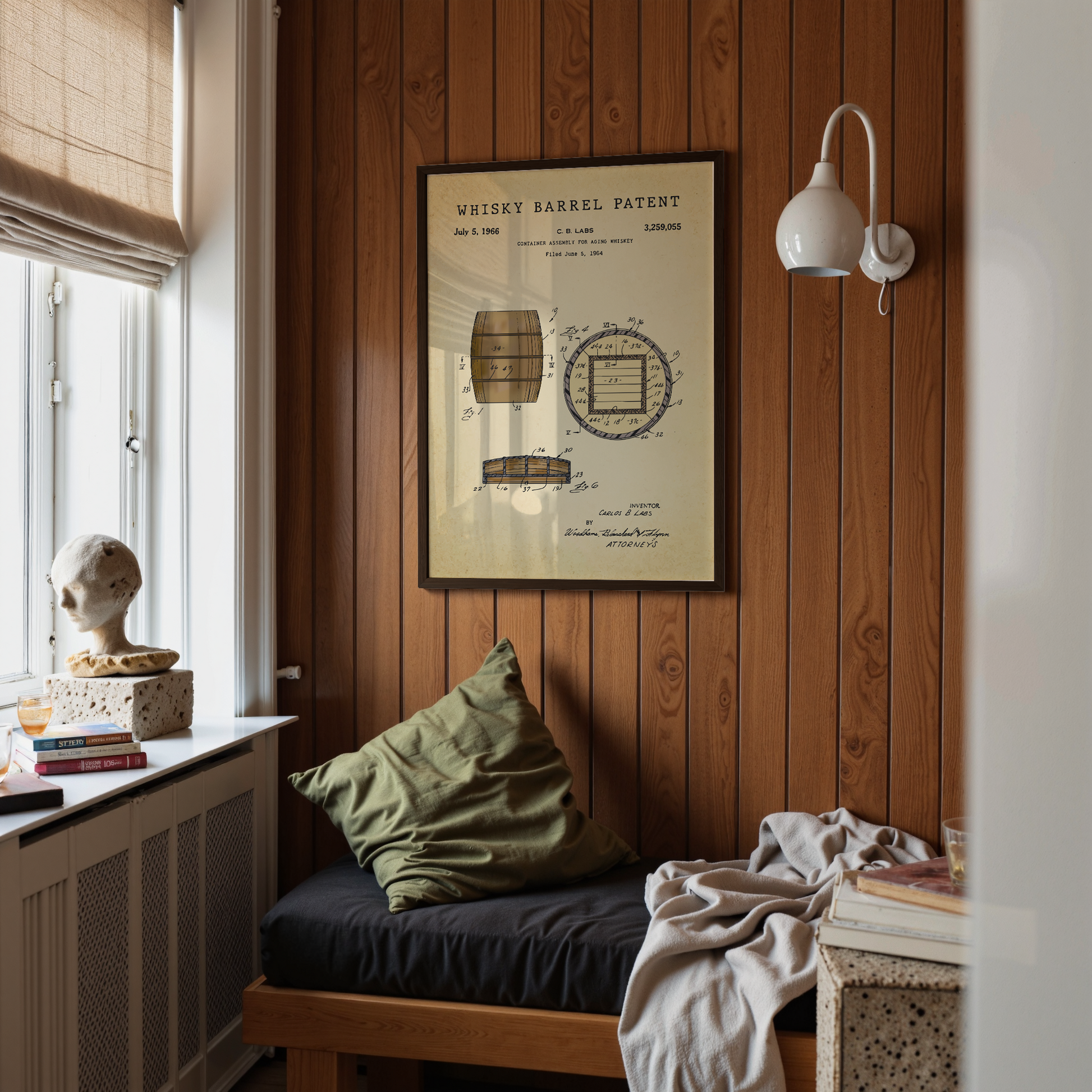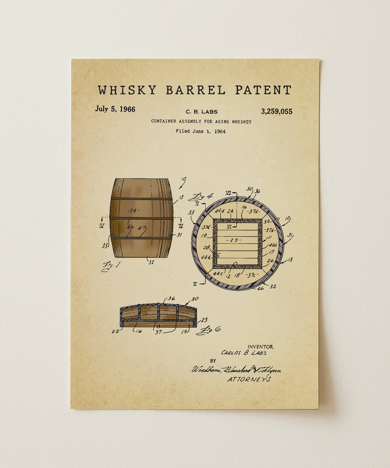 A barrel of heritage and craftsmanship, immortalized in ink. This print captures the original patent design of a whiskey barrel — each stave, hoop, and curve painted with intention. You can almost smell the oak, feel the weight, taste the history in every ring. Perfect for lovers of tradition, design, and timeless spirit — this piece brings the artistry of old-world craft into your home.